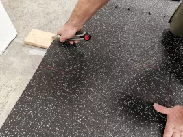 Skládate-li celoplošnou podlahu v místnosti, budete potřebovat 1x ROH, OKRAJE v takovém počtu aby pokryly délku jedné a druhé stěny od první rohové dlaždice. Tímto vytvoříte jednu řadu dlaždic okolo dvou stěn s rovným okrajem. Pro zbytek plochy použite už jen dlaždice typu STŘED, které vyplní celou plochu a u zbylých dvou stěn dlaždice zaříznete dle potřeby. Zaříznout lze ostrým odlamovacím nožem či jiným ostrým nástrojem. Pro rovný řez použijte vodící lištu.