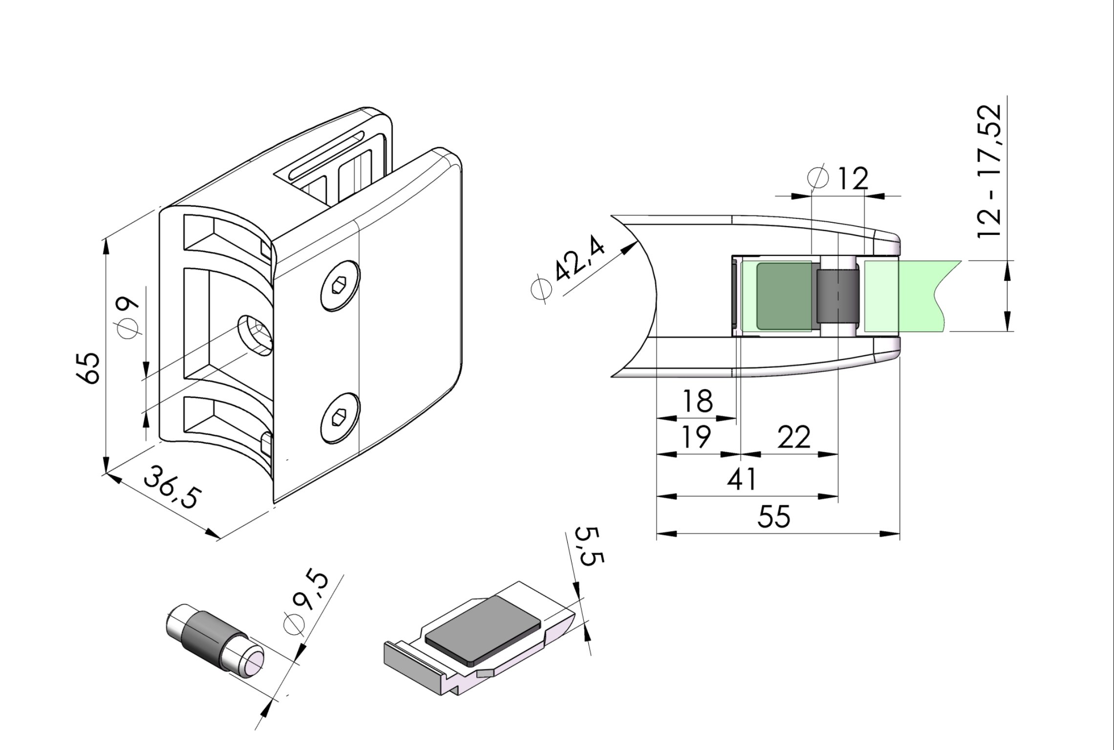 Držák je určen k uchycení skla na sloupek kulatý D40-42,4