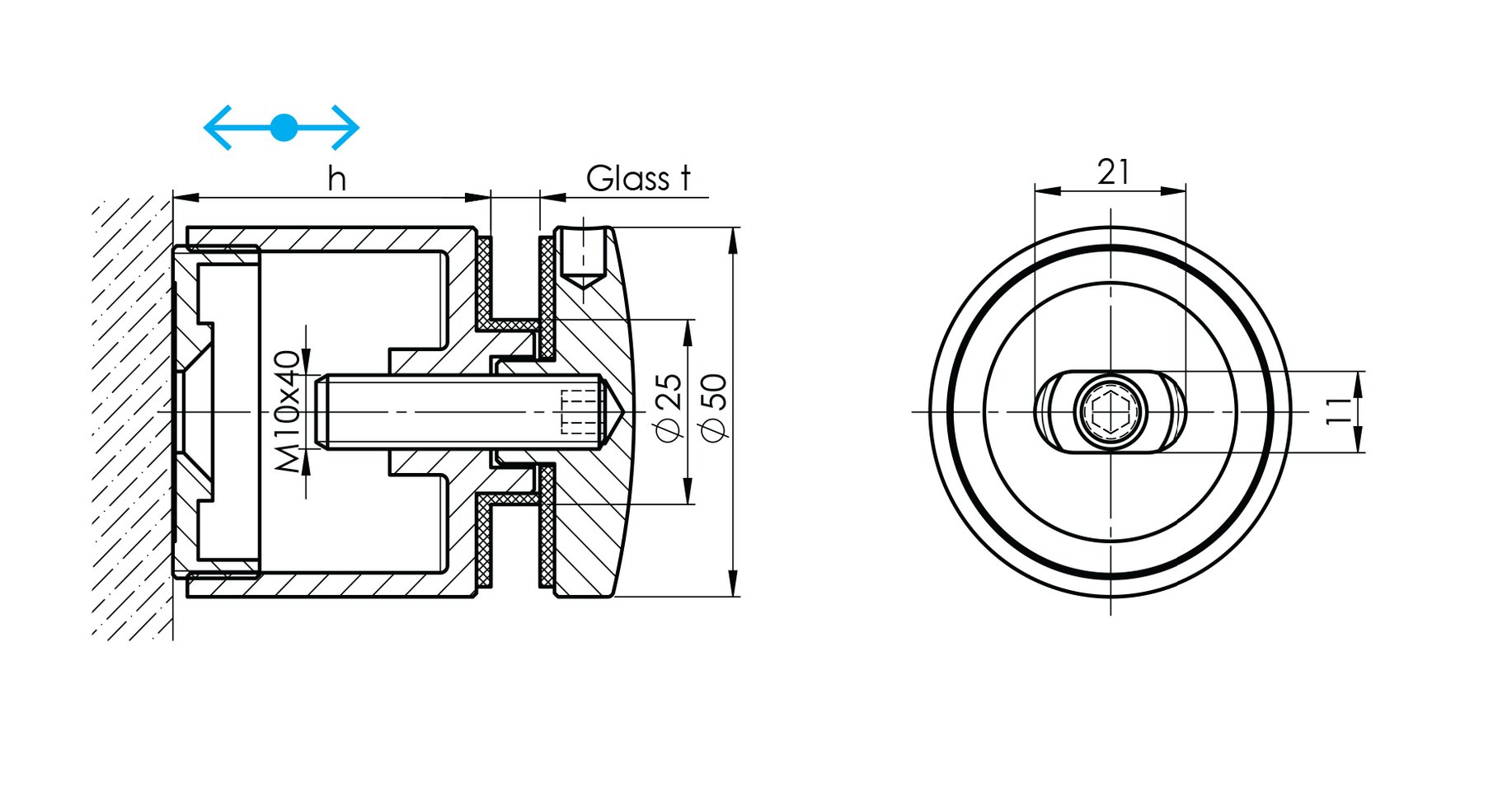 Držák skla bodový stavitelný- 47 D50/42-47 M10 černý