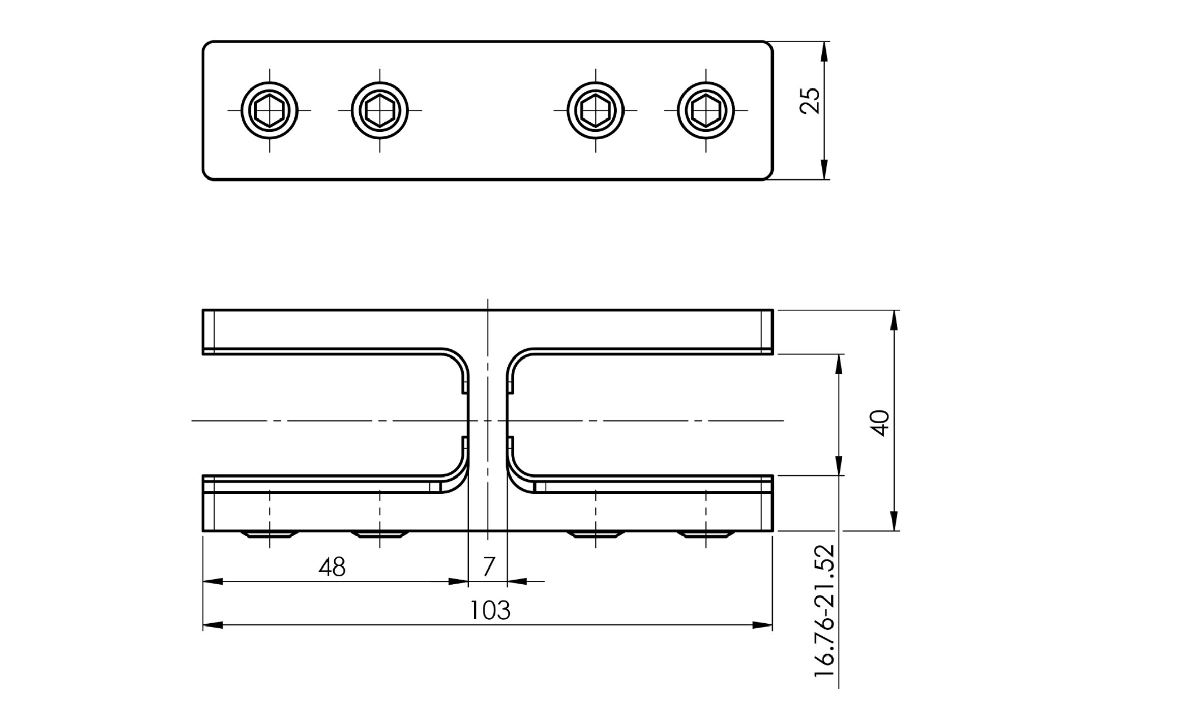 Držák spojka skla - sklo/sklo - 180° 16,76-21,52