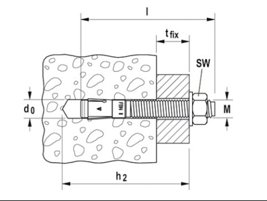 Průvlaková kotva FM753, NEREZ A4 10x90 M10/20