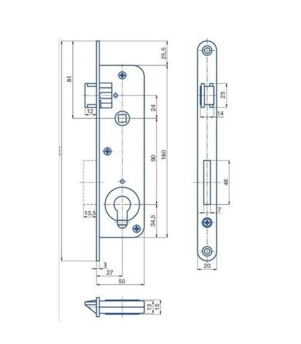 Zámek zadlabací vložkový, s převodem, dvouzápadový